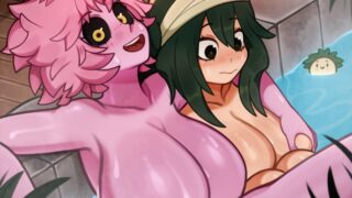 Mina soaking in the baths groping Tsuyu’s big boobs (MelonPuff) [My Hero Academia]